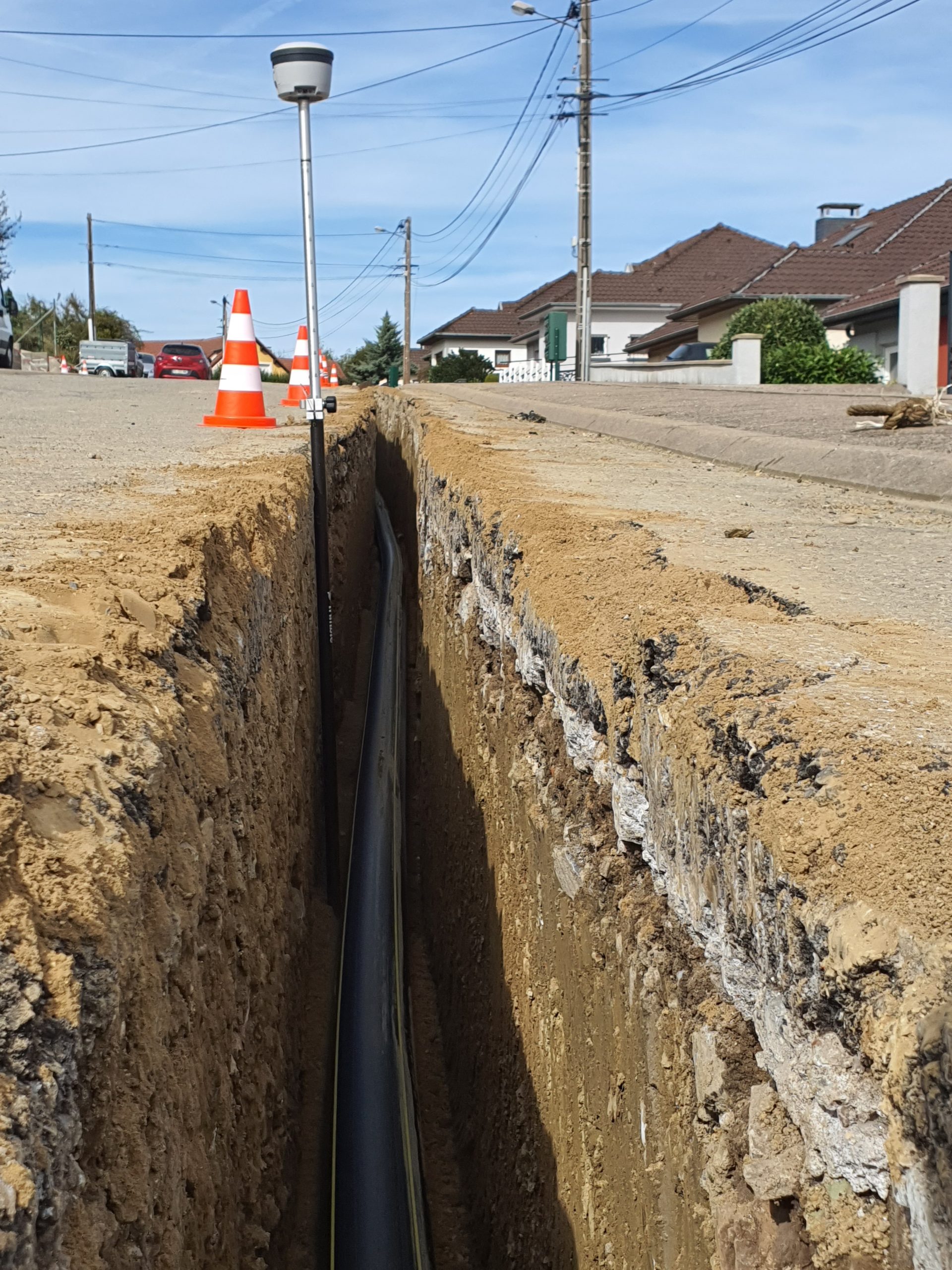 - Levé de 2,5 km de réseau gaz en fouille ouverte et en Classe A
