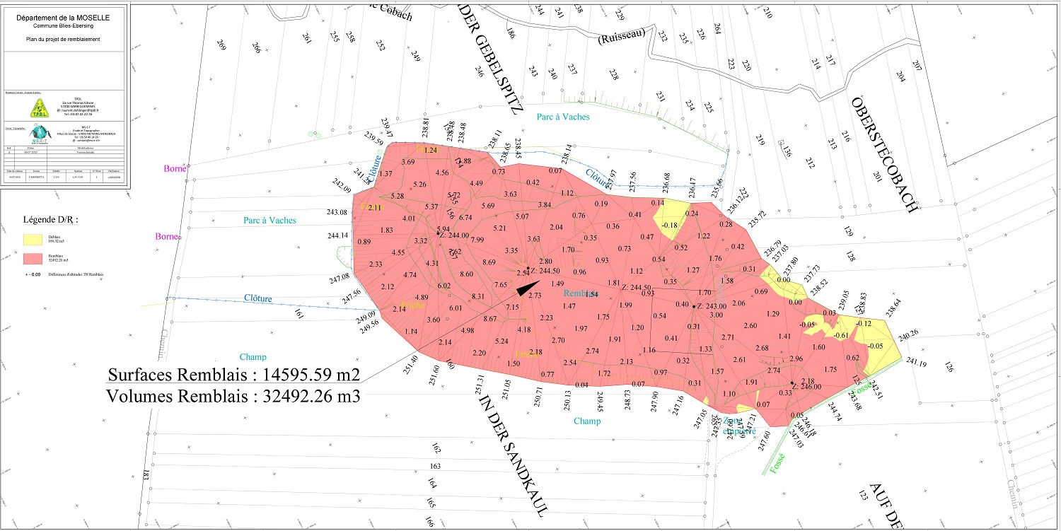 Calcul de remblais à Blies ebersing :
