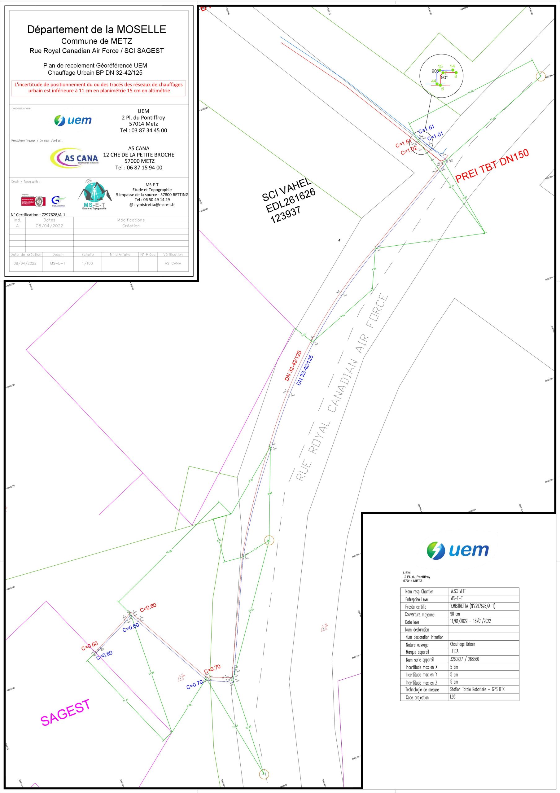- Etablissement des plans de recolement géoréférencé aux normes de chaque concessionnaire et dans le respect du décret anti-endommagement